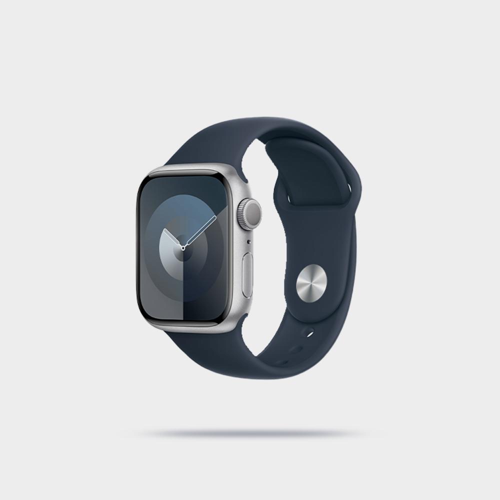 ساعة ابل الجيل التاسع، نظام تحديد المواقع + شبكة خلوية، هيكل فولاذي مقاس 45 ملم مع حزام رياضي من الطين